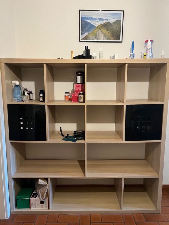 KALLAX 4x4 with two black LEKMAN boxes Kaufen auf Ricardo